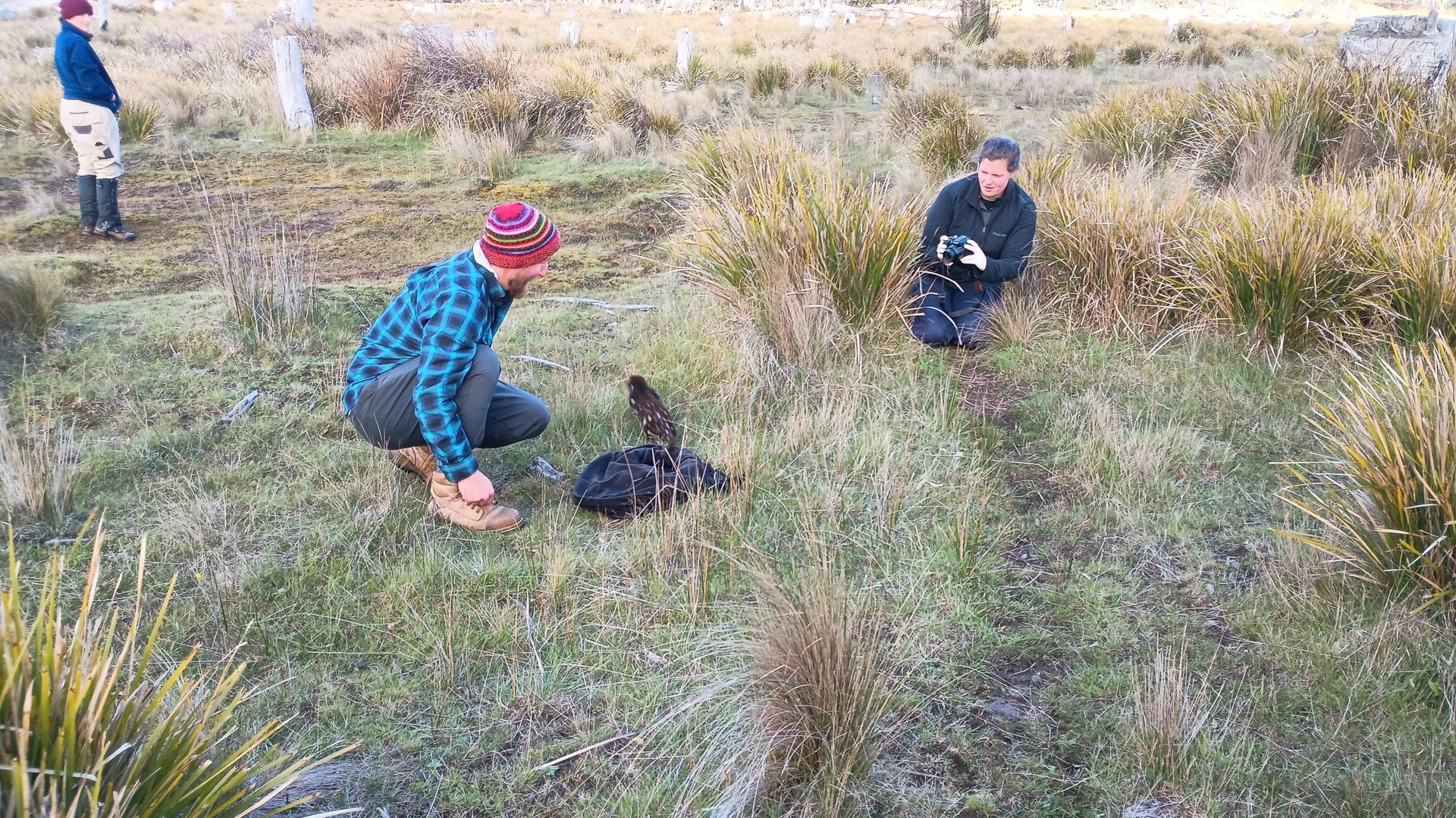 I had the pleasure of accompanying a group of quoll researchers from UTAS / Tasmania Land Conservancy for a morning to check their traps on the property I was staying on. The researchers are investigating why Eastern Quoll populations are declining in the Midlands of Tasmania. They set traps to find and track quolls in the area, and later they will release bred quolls to see if they can bolster the numbers. We went out into the bush at sunrise and checked about 20 traps wouldn’t you know it, they got one! It was a Spotted Tail Quoll, which they let me release it after doing their thing. Such lithe, majestic creatures. This one, they named Himalaya, pranced away quite gracefully when I took the bag off her. Incredible. What a gift. Thanks Rowena for letting me do that!