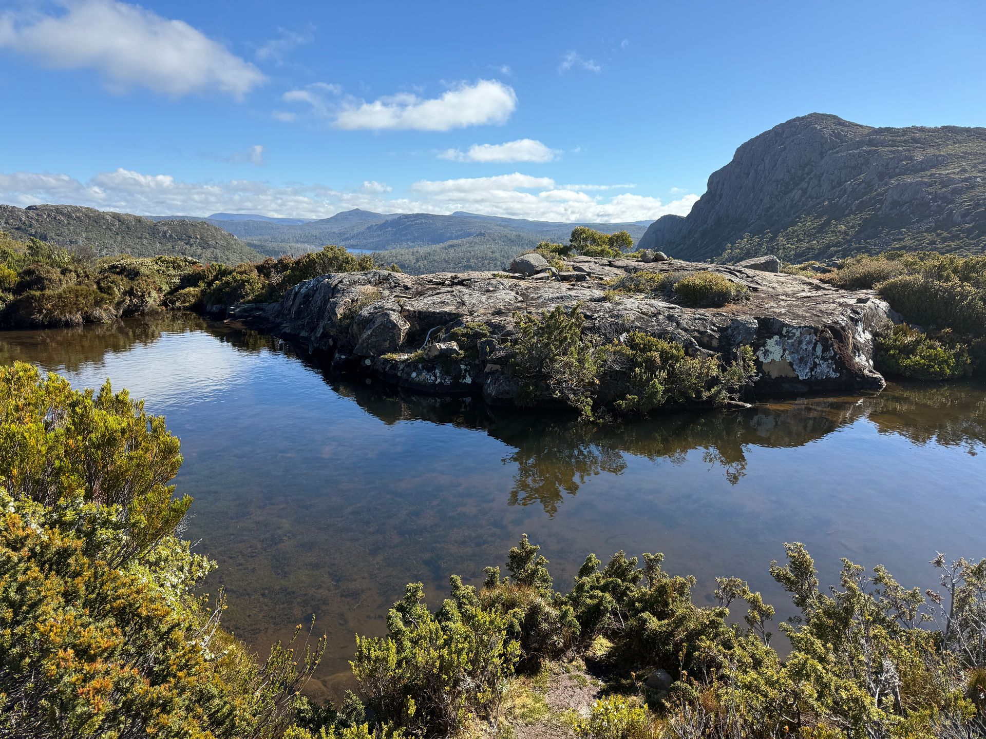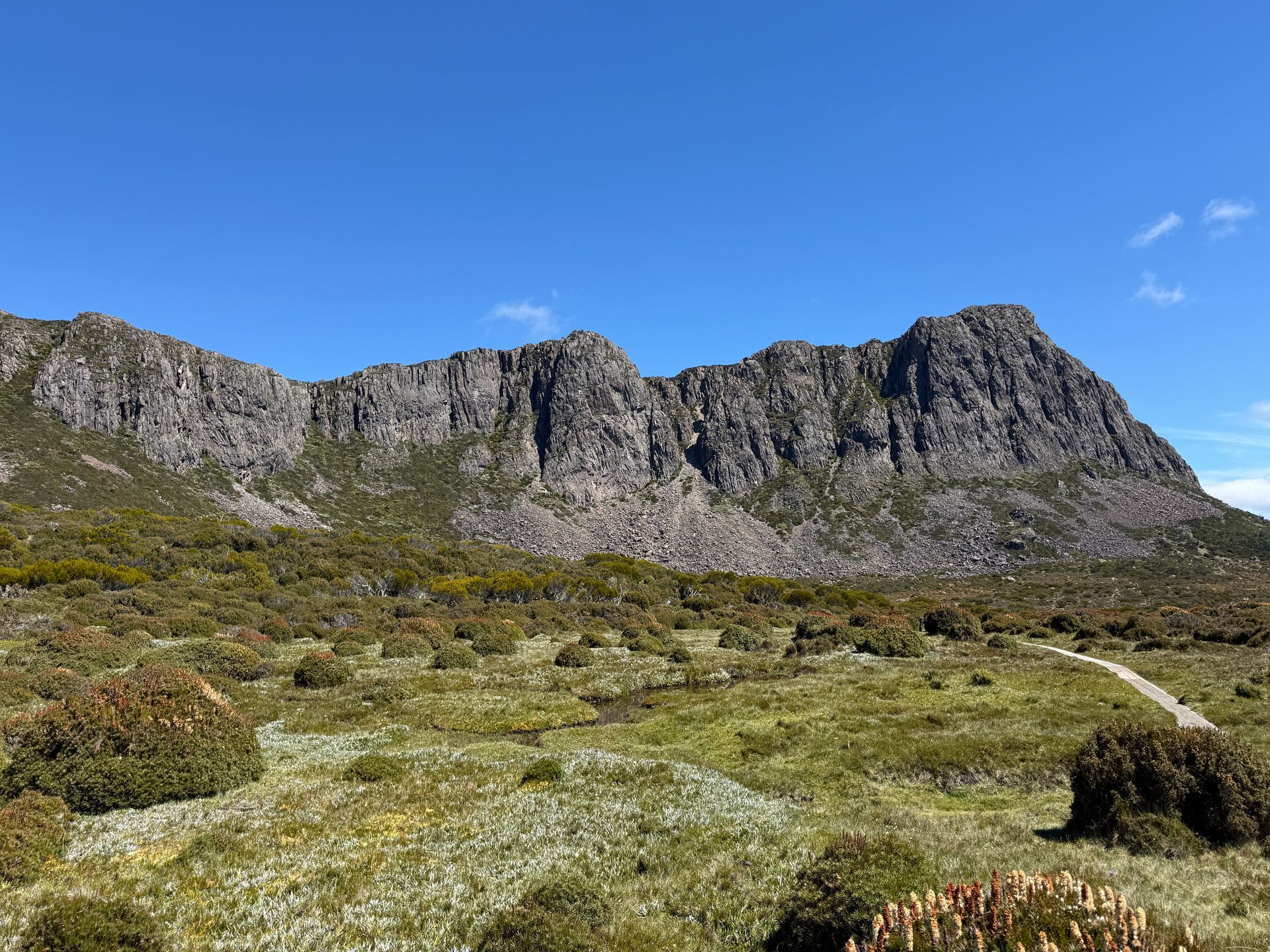 The Wall of Jerusalem National Park is adjacent to Cradle and Lake St. Clair National Parks. Together with a few other parks to the south, they make up a good portion of the World Heritage area in Tasmania. I did 3 days and 2 nights through the Walls of Jerusalem. It was my first 2 night trip since 2024 and my first doing three days of walking with weight in a row since I hurt my leg. I broke out all my pain meds for this one to make sure I could do it. It actually wasn’t very hard hiking, but it is tough carrying weight for 3 days, especially with a knee that sometimes feels like it’s 75 years old. Good thing I was going into another alpine region so my gleeful enthusiasm could carry me through any tough parts, am I right?!