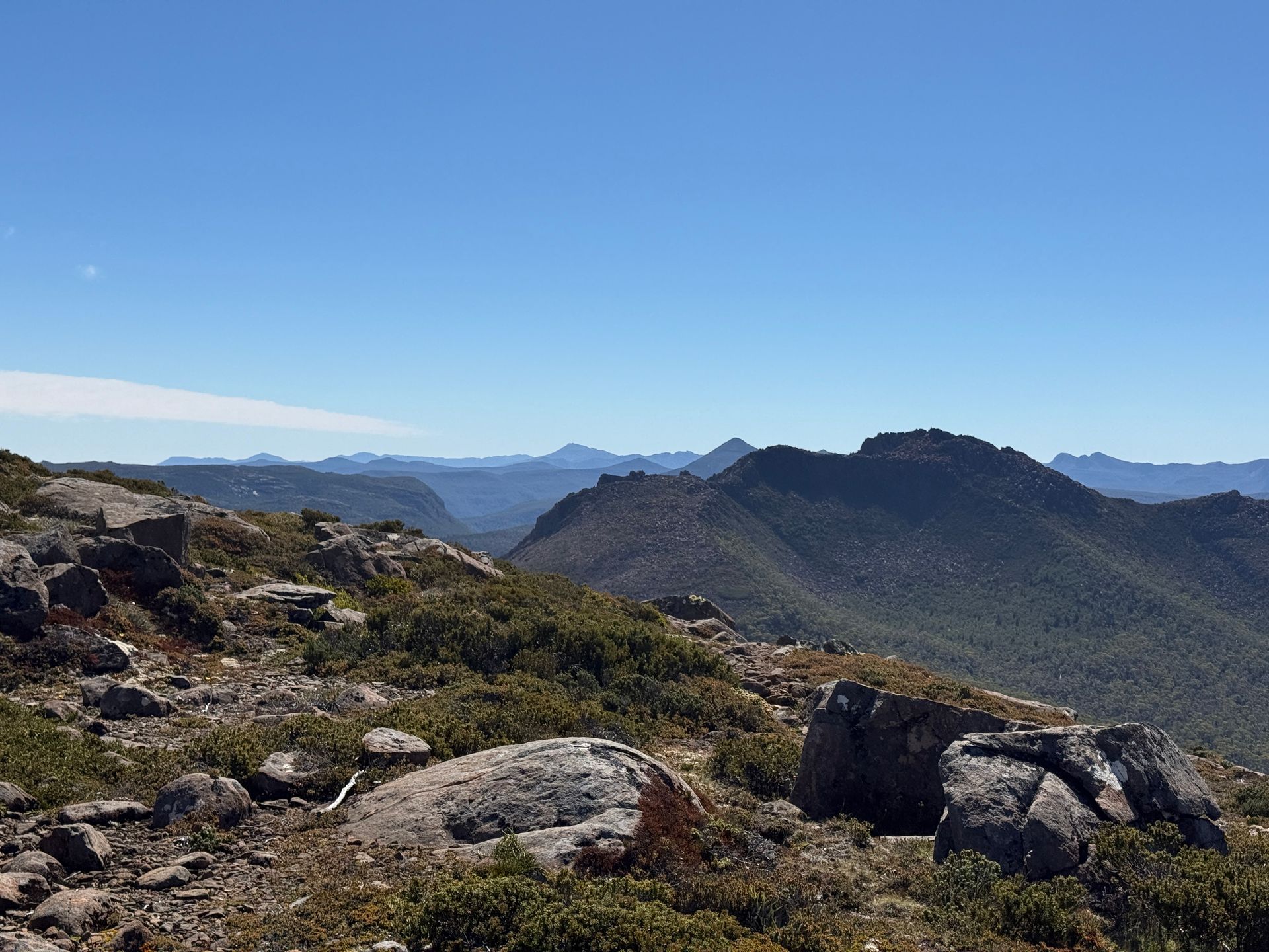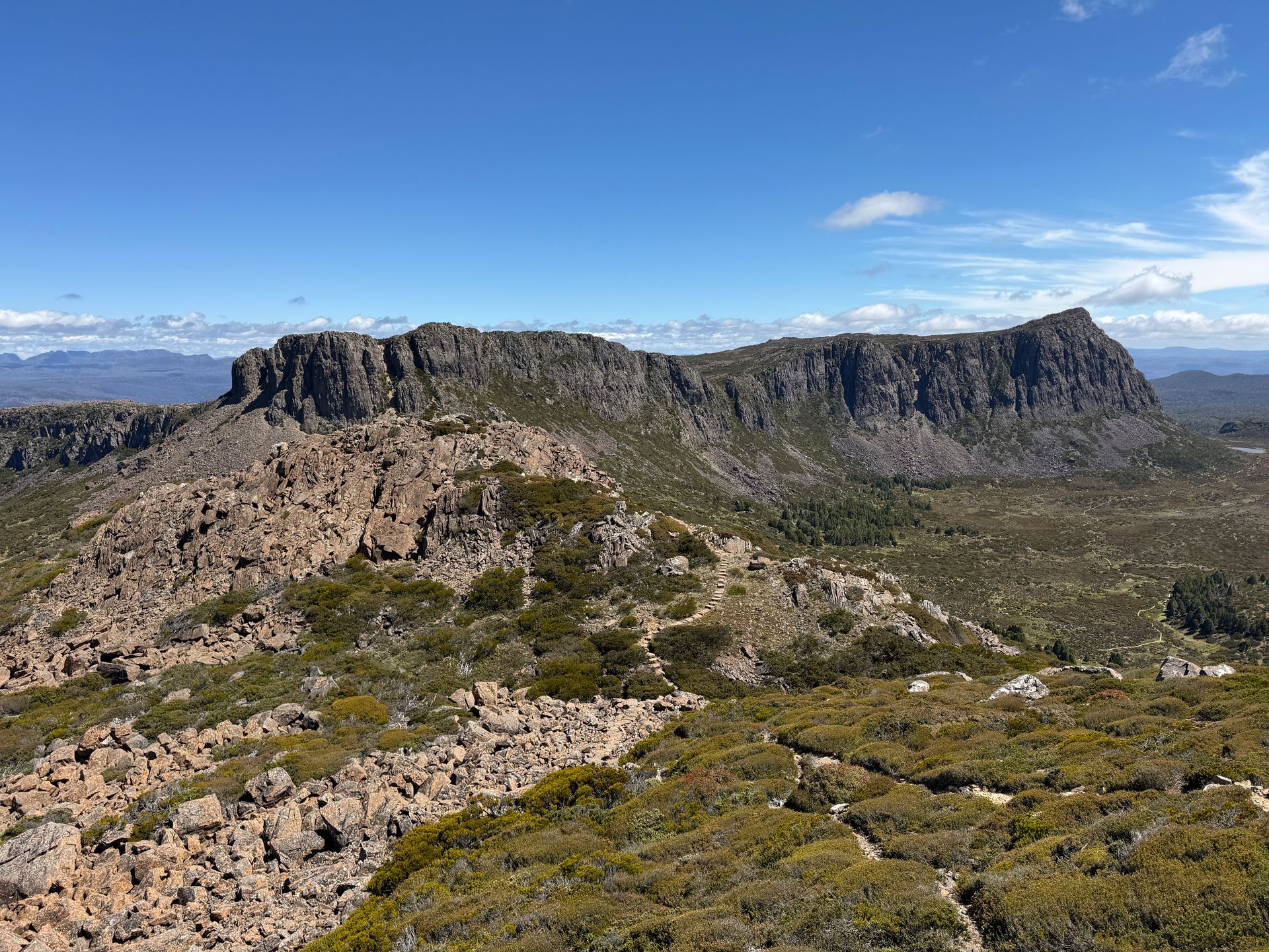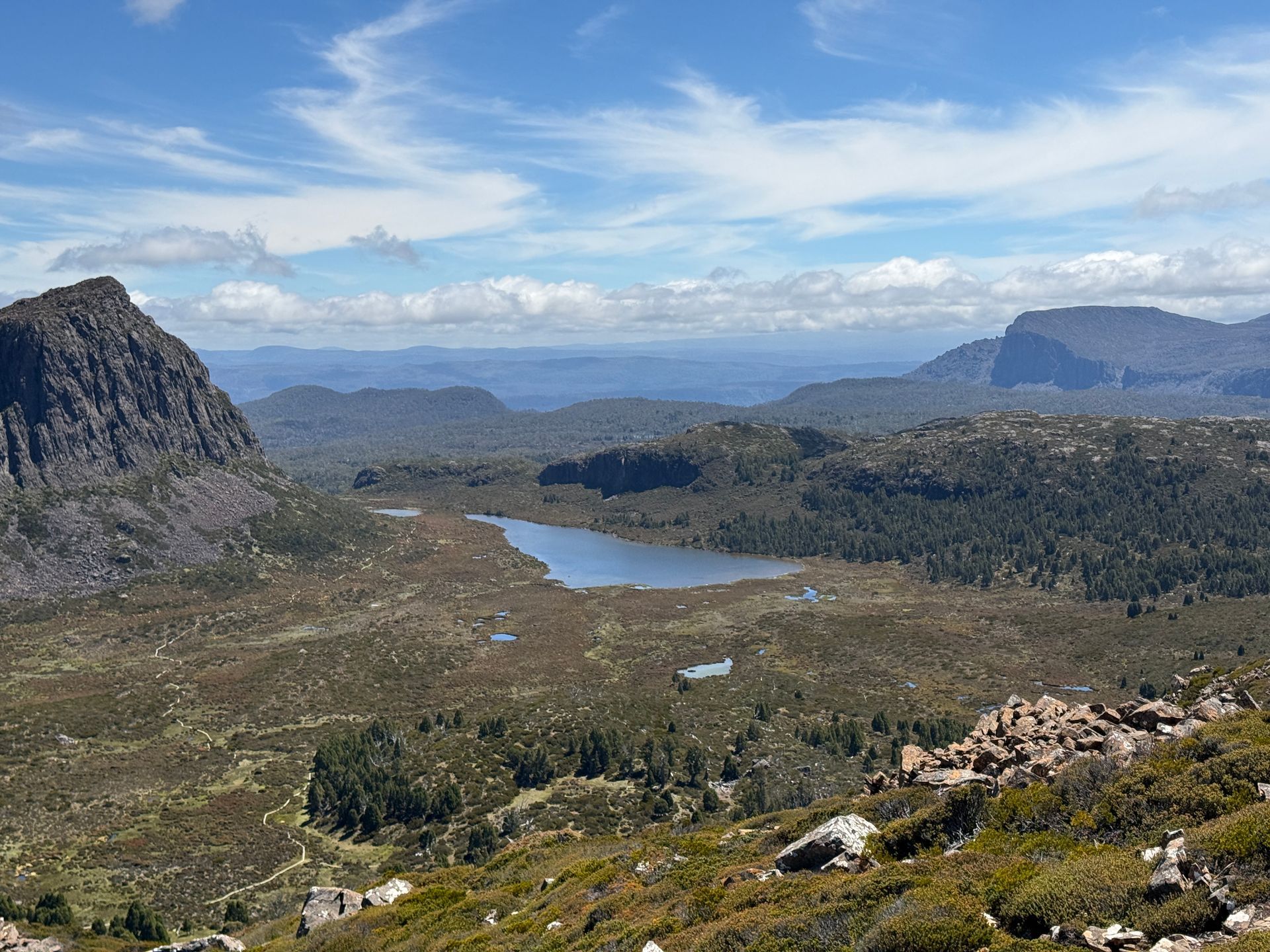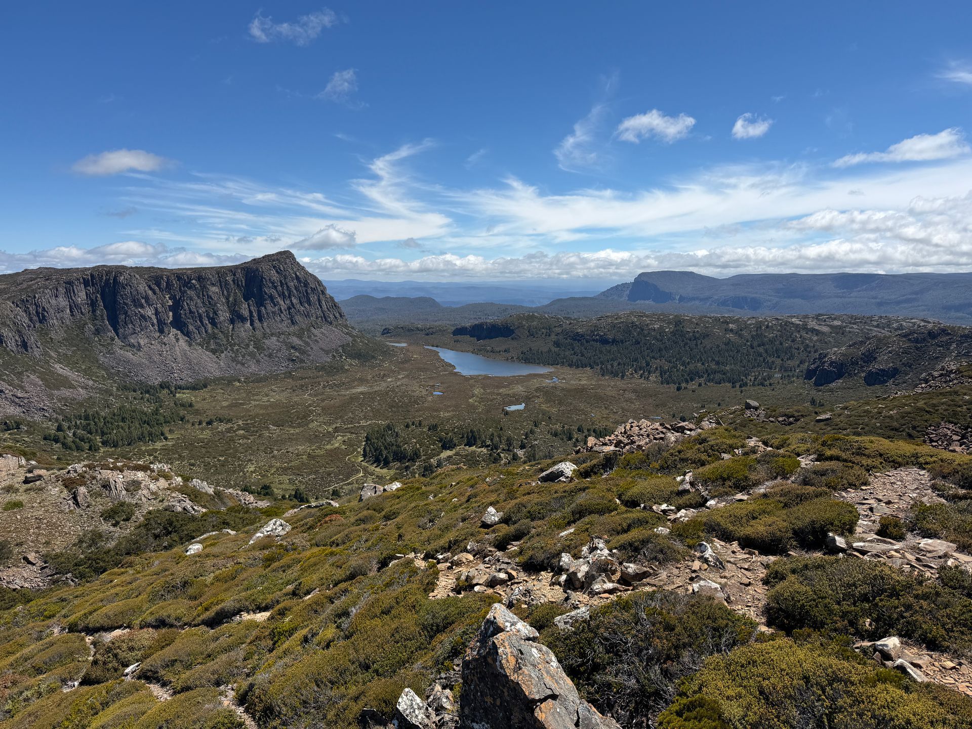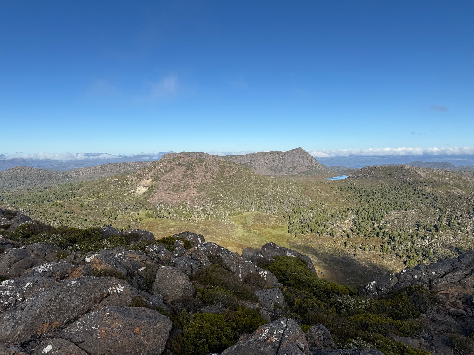 I hiked Mount Rufus later that day, for what I think was the most panoramically spectacular view yet. The hike itself was pretty good, apart from the snakes.. I saw 4 tiger snakes on this hike, and have seen 12 total on this trip. So a third of them I saw that day. And if you’re reading this mom, tiger snakes are definitely not poisonous. And I definitely didn’t very nearly step on one, twice. Like within an inch of it on both steps. Nope, definitely not. Since I didn’t do that and didn’t get bit by any other snakes, the trip was absolutely worth it for the amazing view. You can see Frechmans Cap, The Walls of Jerusalem, the Ducane Ranch, and a bunch of the mountains with Greek names like Mount Olympus, Mount Thetis, etc. I know, more mythological names, it’s a bit ridiculous, but also for a giant nerd it’s also super cool.